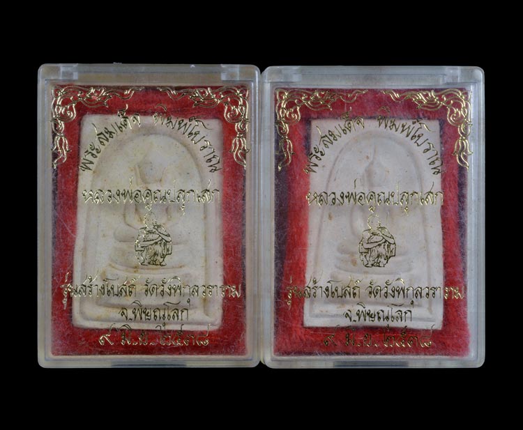 พระสมเด็จ พิมพ์โบราณ ( 2 พิมพ์ , เนื้อผง ) ปลุกเสกโดย หลวงพ่ อคูณ ปริสุทฺโธ วัดบ้านไร่ รุ่น พุทโธ - ธัมโมรวย พ.ศ.2538 ( ก ล่องเดิม , รับพระ 2 องค์ )