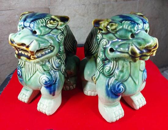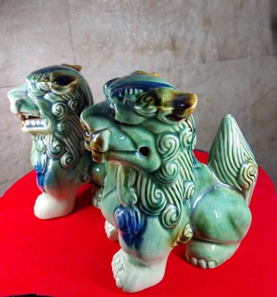 **วัดใจ***สิงโตญี่ปุ่น/ซีซ่า (ขนาดสูง6 นิ้ว) สิงโตคู่นี้ลายเคลือบเอกลักษณ์พร้อม ฮู้เทพพระเจ้ากวนอู (วัดเล่งเน่ยยี่ 2)