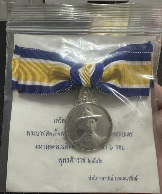เหรียญเงิน แพรแถบ เหรียญที่ระลึก มหามงคลเฉลิมพระชนมพรรษา 6 รอบ รัชกาลที่9 พ.ศ.2542 แพแถบ แบบหญิง