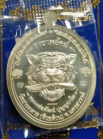 เหรียญหลวงพ่อพัฒน์ วัดห้วยด้วน "รุ่นราชาพยัคฆ์ปี" 2563 เนื้อเงินลายเสือ ลงยาเหลือง-ดำ ลงยาจีวร เลขสวย |
