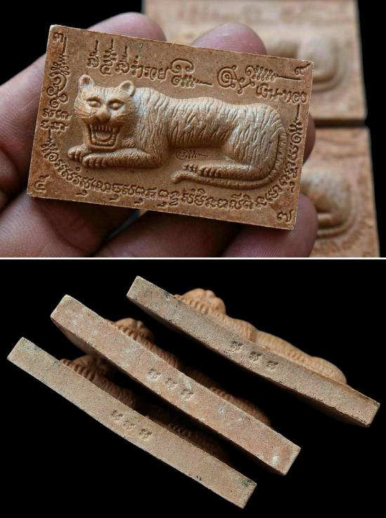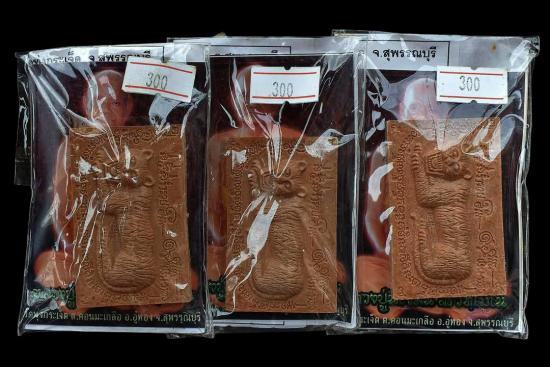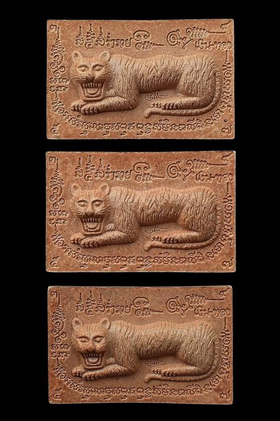 รายละเอียด ชุด 3 องค์...เสือนอนกินทรัพย์สินพูนทวี เนื้อผงว่านยาคลุกน้ำมันเสือ หลังโรยขนเสือ + เม็ดข้าวนารอด + ก้านธูปเสก ปี 2551 หลวงปู่นิเวศน์ วัดทุ่งกระเจ็ด จ.สุพรรณบุรี พร้อมซองรูปใบฝอยเดิมจากวัด สภาพพระตามรูปที่ลงทุกประการ (ขนาดประมาณ 5.4 x 3.4 ซม.)