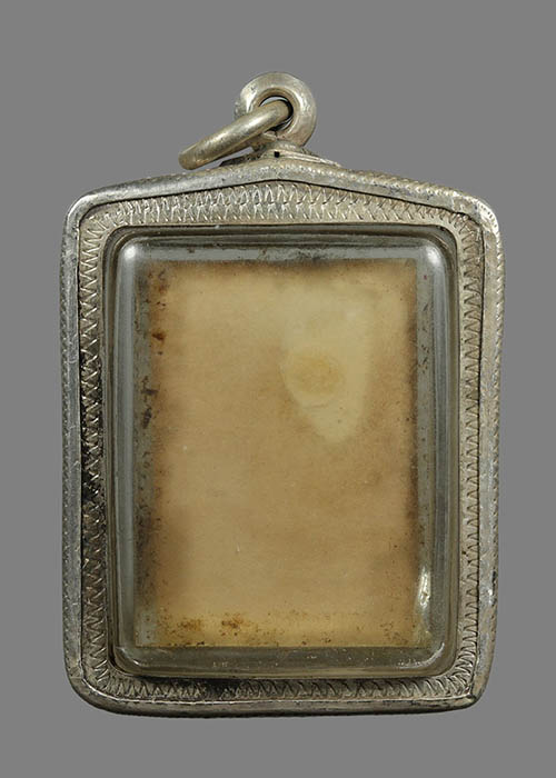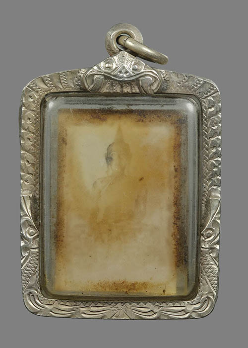ชื่อพระเครื่อง รูปถ่ายเก่า เลี่ยมเงิน ไม่ทราบที่ ขนาดรวมกรอบเงิน สูง 4 ซม. กว้าง 3 ซม.