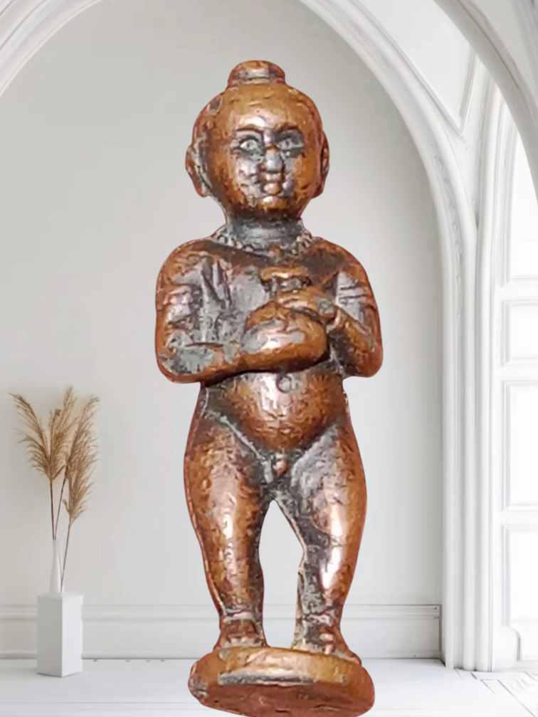 รายละเอียด กุมารทอง ถือถุงเงินเนื้อตะกั่วอาบทองแดง สภาพใช้มา.เก่าบางที่ตีเป็นของล.พ.กวย ไม่รู้ที่ แต่ใช้มาเก่า