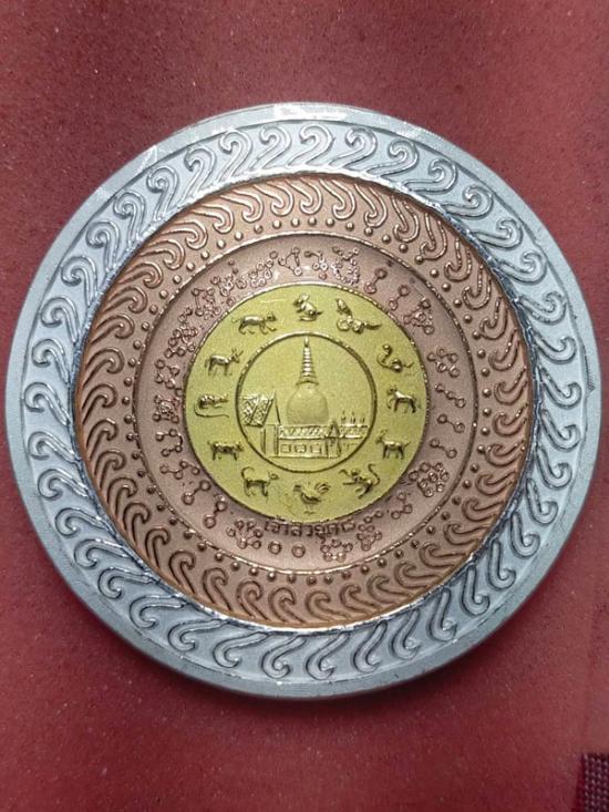 เหรียญบาตรน้ำมนต์ จตุคามรามเทพ รุ่น เจ้าสัวยุค 8 เนื้อโลหะชุบทอง ลงยา 5.5 CM. |