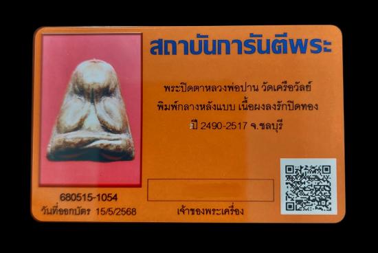 พระปิดตาหลวงพ่อปาน วัดเครือวัลย์ พิมพ์กลางชลูดหลังเเบบ " นิยม " เนื้อผงลงรักปิดทองพร้อมบัตรเวป