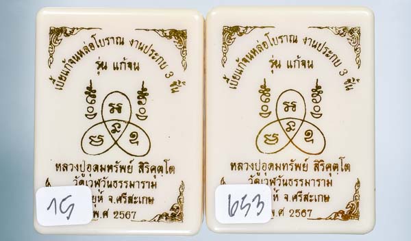 งานหล่อ ประกบ3 ชิ้น ข้างในมีผงงาช้างบด มวลสาร เขย่าดูมีมวลสาร สวยๆ หลวงปู่มหาศิลาร่วมเศก แบ่งเบาๆ ออฟชั่นเนื้อจะมีหลายๆ เนื้อหรือลงยาร่วมด้วย