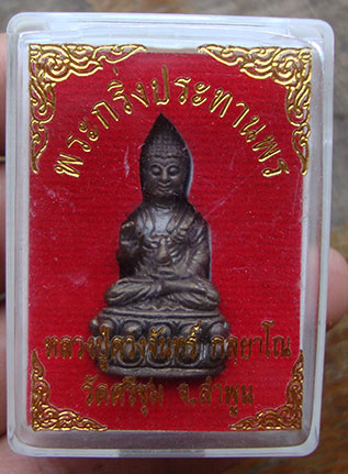 พระกริ่งประทานพร หลวงปู่ดวงจันทร์ วัดศรีชุม จ.ลำพูน ตอกโค๊ต กล่องเดิม สวยครับ