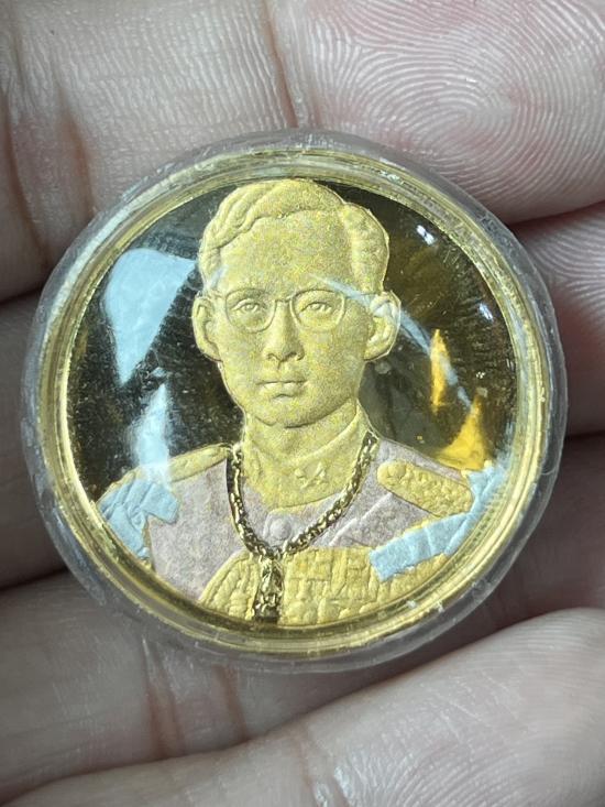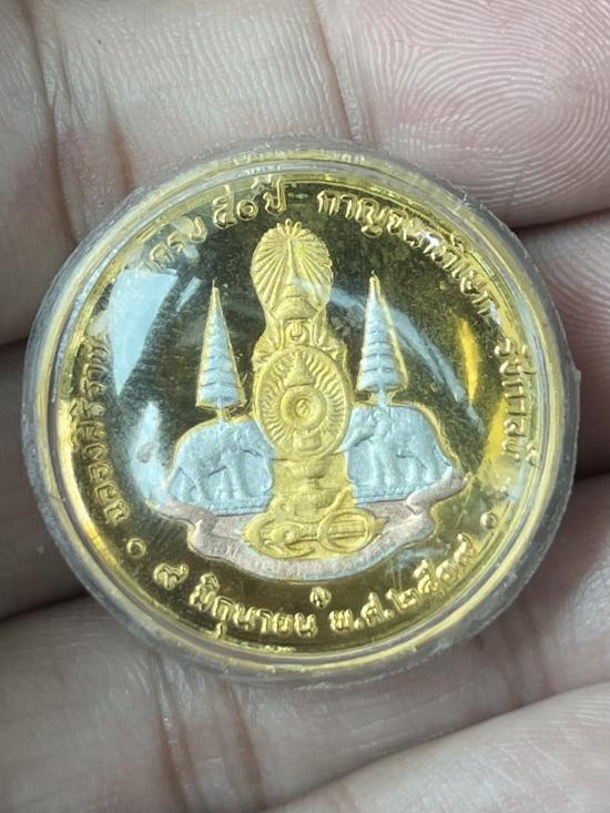 เหรียญในหลวง ร.9 ฉลองสิริราชสมบัติครบ50 ปี กาญจนาภิเษก ปี2539 เนื้อสามกษัตริย์พ่นทราย