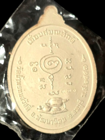 ด้านหลังเหรียญ ตอกหมายเลข ๓๗๐ กำกับ รับประกันพระแท้ตลอดชีพ
