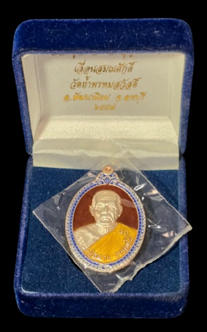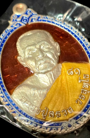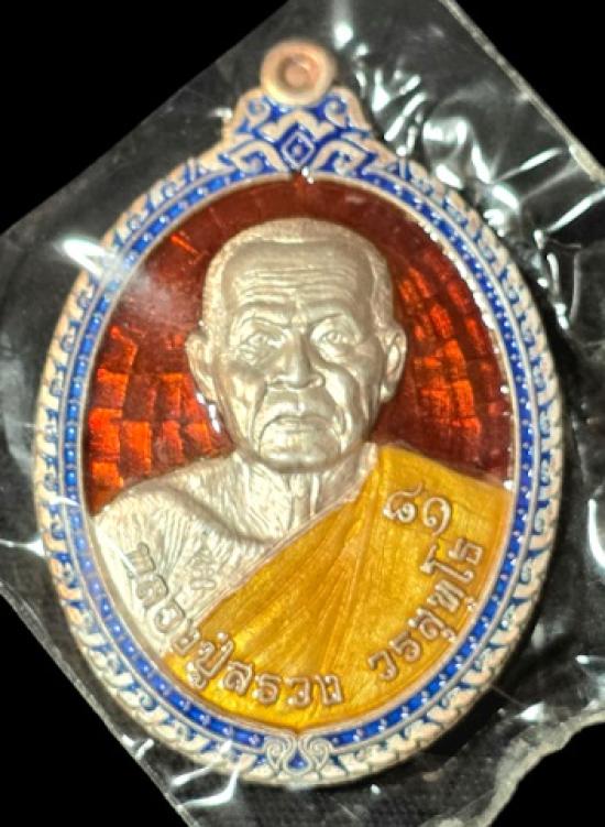 เหรียญเลื่อนสมณศักดิ์ หลวงปู่สรวง วรสุทฺโธ วัดถ้ำพรหมสวัสดิ์ จ.ลพบรี ปี2557 * เนื้อเงินลงยาแดงขอบน้ำเงิน * หมายเลข ๓๗๐ พระสวย พิมพ์คมชัด พระเก็บอย่างดี มาพร้อมกล่องกำมะหยี่เดิมๆจากวัด