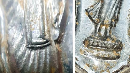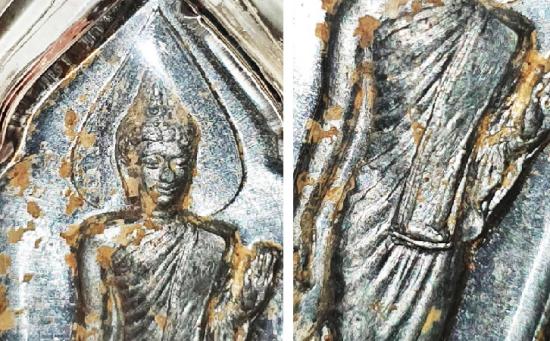 พระลีลา 25 พุทธศตวรรษ ปี 2500 เนื้อชินตะกั่ว พิมพ์สังฆาฏิจุด พร้อมเลี่ยม องค์นี้มีคราบดินคลาสสิค |