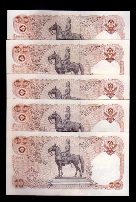## ธนบัตร 10 บาท ## ทรงม้า ## 120 ปี กระทรวง ## เรียงเลข 5 ฉบับ ## แกะแหนบ ## ไม่ผ่านการใช้ |