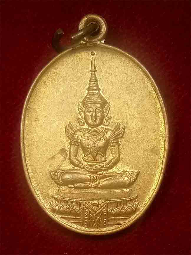 เหรียญ พระแก้วมรกต ที่ระลึกเพื่อจัดตั้งมูลนิธิสังฆศาสน์ ปี 2530 กะไหล่ทอง หลวงปู่ดู่ วัดสะแก ปลุกเสก |