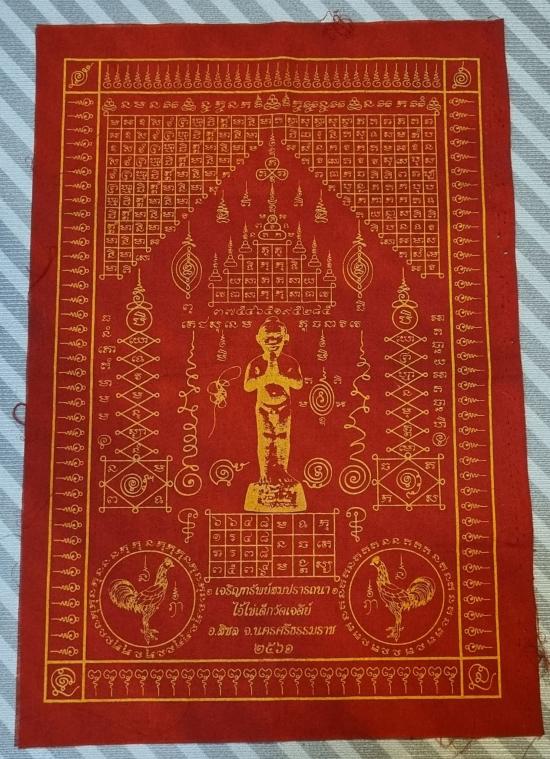 วัดใจเคาะเดียว....100....ผ้ายันต์ไอ้ไข่ วัดเจดีย์ อ.สิชล จ.นครศรีธรรมราช รุ่นเจริญทรัพย์ ปี 61 ผืนสีแดง ขนาด 11 นิ้ว คูณ 16 นิ้ว (ตอกโค๊ตชัดเจน) |