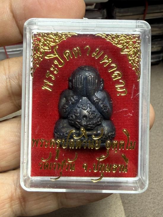 พระปิดตามหาลาภ พระครูปลัดวินัย อุตตโม วัดเวฬุวัน ปทุมธานี เนื้อทองแดง อุดผงว่านเมตตามหานิยมฝังตะกรุด+จีวร เด่นด้าน คงกระพัน มหาอำนาจ และเมตตาดีแล พร้อมกล่องเดิม |