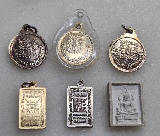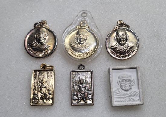 เหรียญกลมเล็กหลังยันต์ตรีเพชร 3 เหรียญสี่เหลี่ยมหลังยันต์ทำน้ำมนต์ 2 พระผงหลวงพ่อฤาษีลิงดำหลังสมเด็จองค์ปฐม 1 |