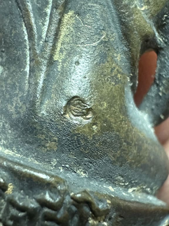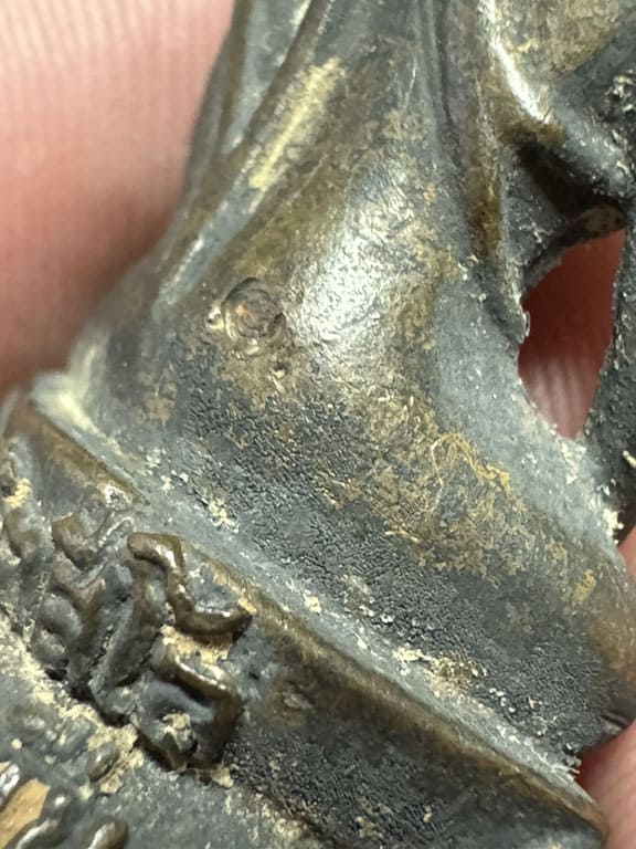 พระกริ่งอมตะเถระฐิตสีโล อายุยืนหมุนโชค เนื้อนวโลหะ เทดินไทย ปี 2546 หลวงปู่หมุน วัดบ้านจาน ตอกโค๊ตหมายเลข 178 |