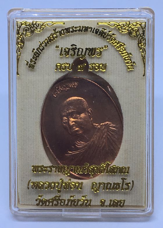 เหรียญรุ่นเจริญพร ๗ รอบเนื้อทองแดง ๒๐๐๙ ที่ระลึกร่วมสร้างพระมหาเจดีย์วัดศรีอภัยวัน หลวงปู่ท่อน วัดป่าศรีอภัยวัน
