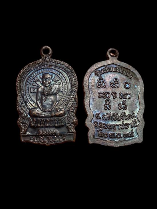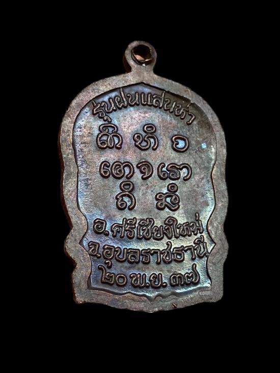 Q365. เหรียญนั่งพาน หลวงปู่พรหมมา เขมจาโร รุ่นฝนแสนห่า ปี 2537 เนื้อทองแดง (เคาะเดียวแดง) |
