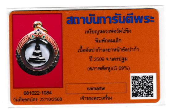 หลวงพ่อวัดไร่ขิง ลงยา 2509 เลี่ยมทองลงยา