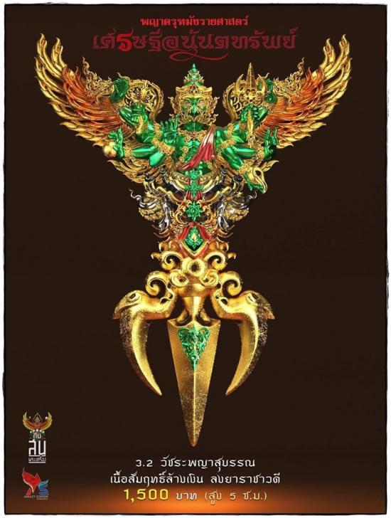 พญาครุฑ วัชระพญาสุบรรณมังรายศาสตร์ " เศรษฐีอนันตทรัพย์ " ครูบาวิรุต ญาณสํวโร วัดสันมะเหม้า อ.พาน จ.เชียงราย พิมพ์เล็ก (สูงประมาณ 5 เซนติเมตร) เนื้อสัมฤทธิ์ล้างเงินลงยา หมายเลข ๒๓๐ พร้อมกล่องเดิม (ราคา |