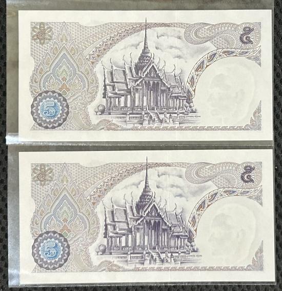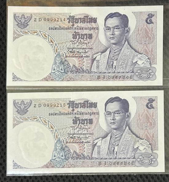 ธนบัตร 5 บาท ร.9 เลขสวยๆ ตอง 999 กลาง ทั้ง 2 ใบ เลขท้ายเรียง 214-215 ไม่ผ่านการใช้งาน |