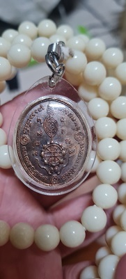 เหรียญหล่อดวงโพธิญาณกำลังแผ่นดิน (รุ่นดวงเหนือดวง)เนื้อสำริด หลวงตาม้า วัดถ้ำเมืองนะ พร้อมรอยจารหลวงตาม้า เลี่ยมจากวัดพร้อมประคำ