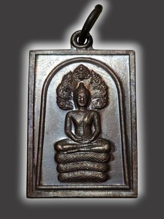 A2435.พระปางนาคปรก พระประจำวันเสาร์ หลัง ยันต์ 5 นะ โม พุท ธา ยะ เนื้อทองแดง ปี 2534 |