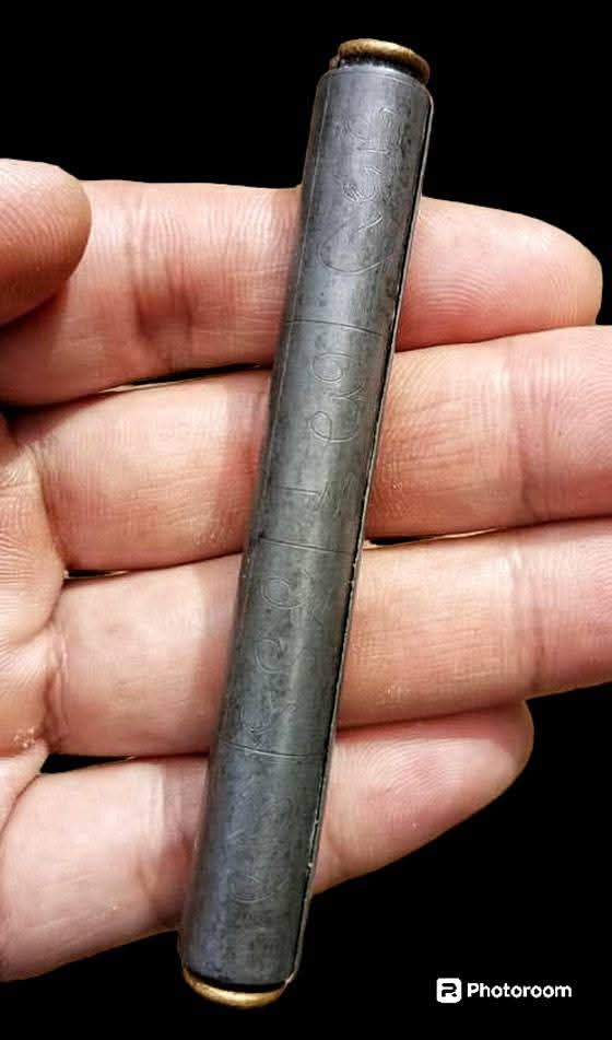 ตะกรุดหมุนได้ เนื้อ 3 กษัตริย์(ตะกั่ว-ทองเหลือง(อั่ว)-ทองแดง(ไส้)) เหมาติดมาไม่ทราบที่?