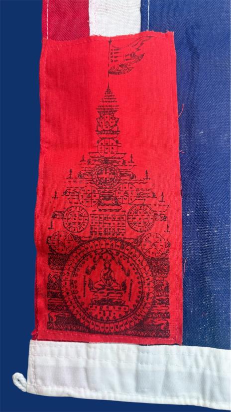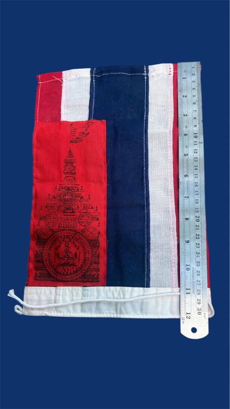 ผ้ายันต์ธงมหาพิชัยสงคราม ติดธงชาติ ขนาด 12 นิ้ว ผ้าดิบ หลวงพ่อฤาษีลิงดำ วัดท่าซุง สร้างน้อย หายาก