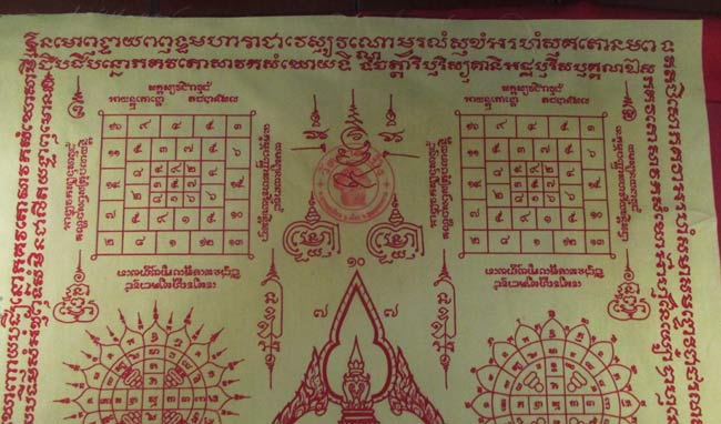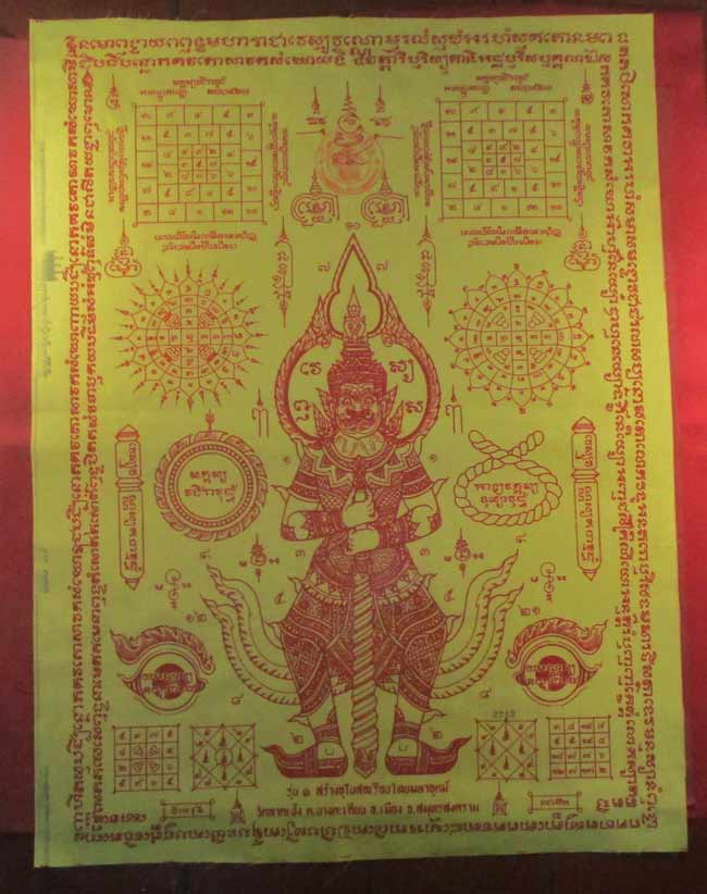 ผ้ายันต์ ท้าวเวสสุวรรณ รุ่น ๑ สร้างอุโบสถเรือนไทยมหาอุตม์ วัดลาดเป้ง ต.นางตะเคียน อ.เมือง จ.สมุทรสงคราม ครับ (สีแดง ครับ) |