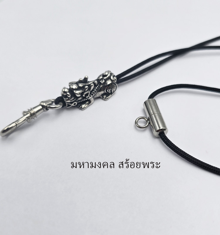 สร้อยเชือกร่มขนาด 2 มิล แต่งด้วยปีเซียะและก้ามปูสปริง แขวนพระได้ 2 องค์ ยาว 24 นิ้ว ยังมีสินค้าอีกหลากหลายรายการคลิกทีรูปค้อนน่ะครับ