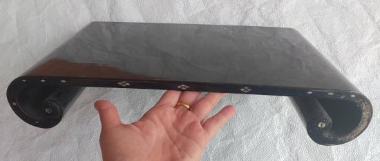 | ชื่อพระเครื่อง | ***วัดใจ***กี่ไม้สีดำประดับมุก  ฐานรองพระไม้เก่างานนอกมือสองขนาด กว้าง 10 นิ้ว สูง 3 นิ้ว ยาว 17.5 นิ้ว ดีเทลจากญี่ปุ่น ผลิตในญี่ปุ่น |
