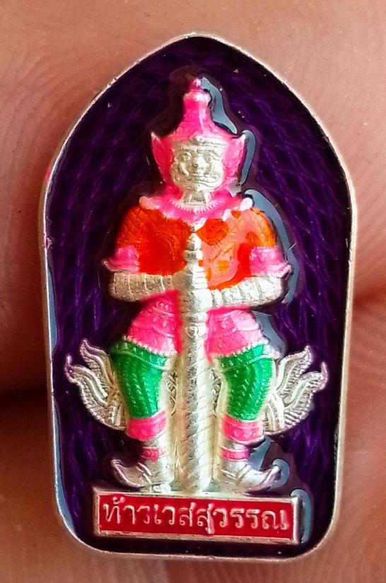 รายละเอียด ปรกเศรษฐีคุ้มภัย ท้าวเวสสุวรรณ หลวงพ่อพัฒน์ วัดห้วยด้วน จังหวัดนครสวรรค์ ปี 65 เนื้อเงินลงยา ตอกนัมเบอร์ 255 พร้อมกล่องเดิมสภาพสวย