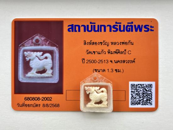 ๙๙๙ สิงห์สองขวัญ หลวงพ่อกัน วัดเขาแก้ว พร้อมบัตรG ๙๙๙