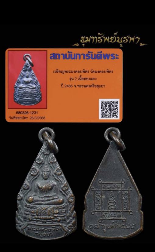 เหรียญหลวงพ่อมงคลบพิตร รุ่น 2 ปี 2485 มีหน้าตา ของดีราคาเบาๆครับ