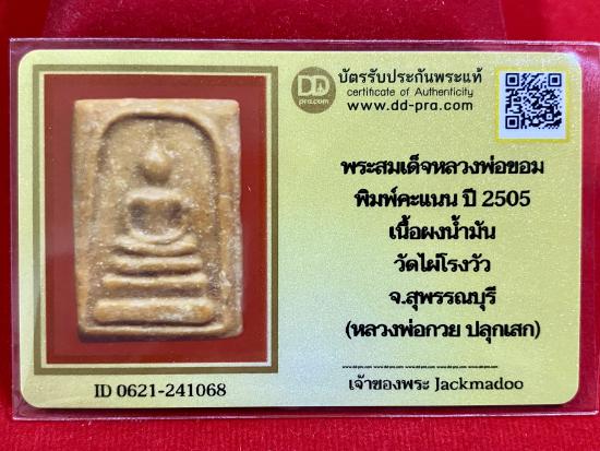 พระสมเด็จหลวงพ่อขอม พิมพ์คะแนน ปี 2505 เนื้อผงน้ำมัน วัดไผ่โรงวัว จ.สุพรรณบุรี (หลวงพ่อกวย ปลุกเสก) |