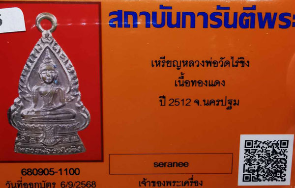 เหรียญหลวงพ่อวัดไร่ขิง เนื้อทองแดง ปี2512 จ.นครปฐม + บัตรG-pra สภาพเดิมค่ะ สภาพตามรูปทุกประการค่ะ