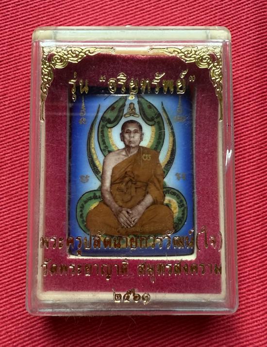 300 ล็อกเก็ตหลวงพ่อใจ วัดพระยาญาติ จ.สมุทรสงคราม รุ่นอริยทรัพย์ ปี 2561 หลังปิดแผ่นอัลปาก้า อุดผงฝังตะกรุด เส้นเกศา ตอกเลข 302