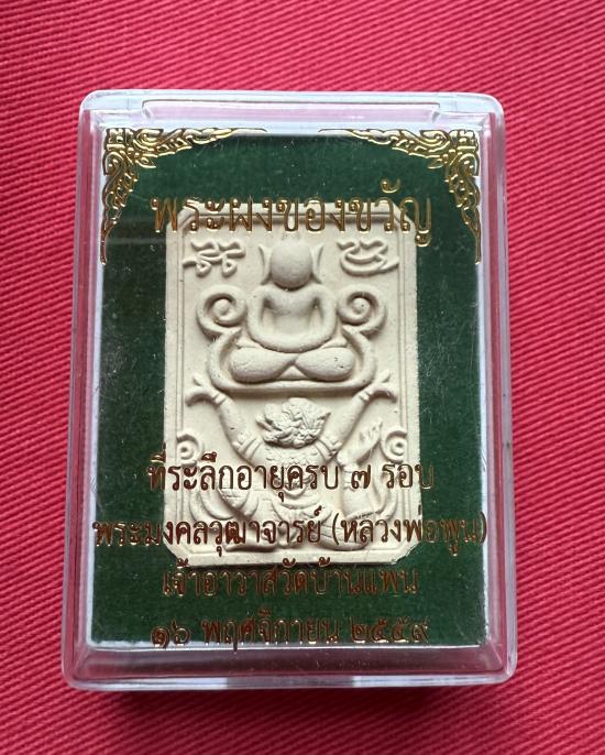 พระผงของขวัญ หลวงพ่อพูน วัดบ้านแพน จ.อยุธยา รุ่นครบ 7 รอบ ปี 2559 เนื้อผงเกสร |