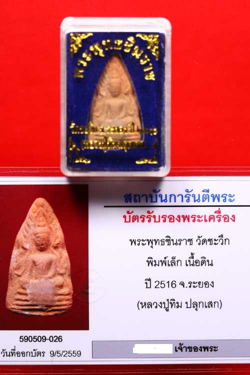 ระพุทธชินราช วัดชะวึก พิมพ์เล็ก เนื้อดิน ปี 2516 จ.ระยอง(หลวงปู่ทิม ปลุกเสก/มีบัตรรับรองฯ)