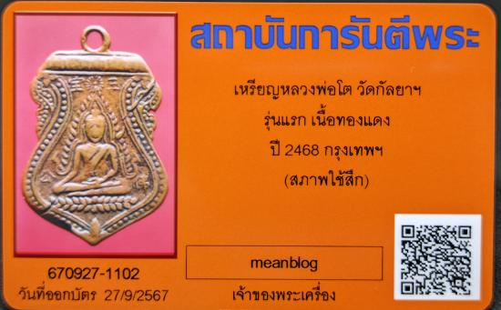 เหรียญเก่าแก่หายาก เหรียญหลวงพ่อโต วัดกัลยาฯ รุ่นแรก เนื้อทองแดง ปี 2468 กรุงเทพฯ พร้อมบัตรรับรองครับ
