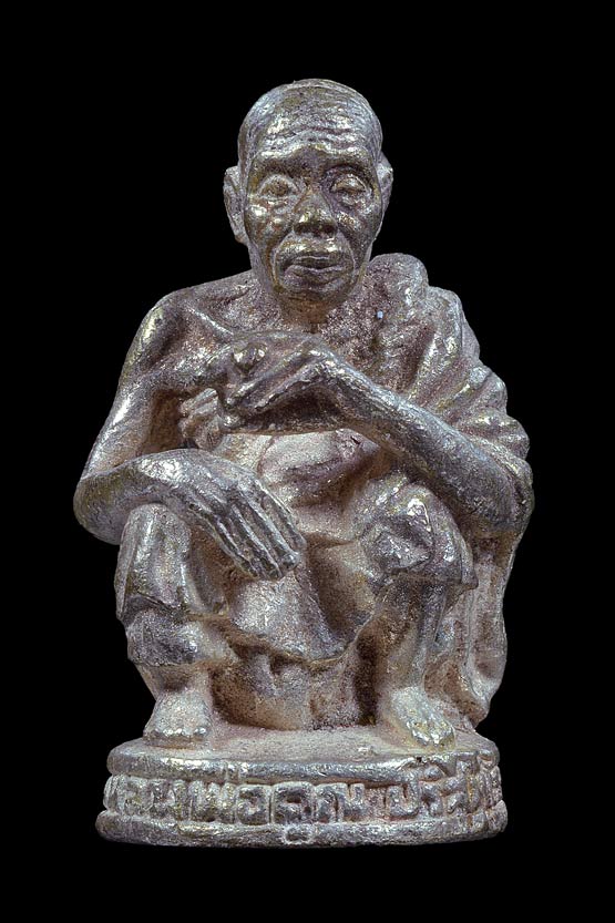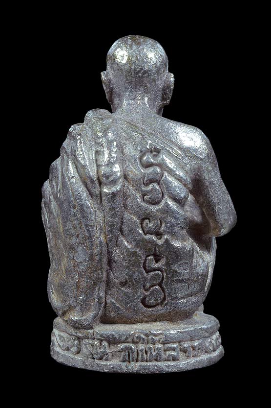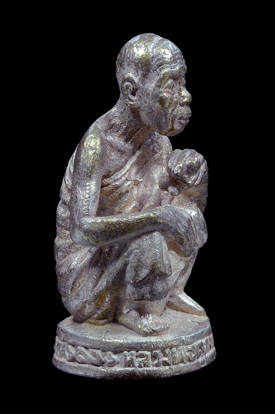 รูปหล่อเหมือนนั่งยอง ( ขนาดจัมโบ้ ฐานกว้าง 1.8 ซ.ม. , สูง 3.5 ซ.ม. ) รุ่น กูให้ลาภ ( เนื้อโลหะชุบเงิน ) พ.ศ.2537