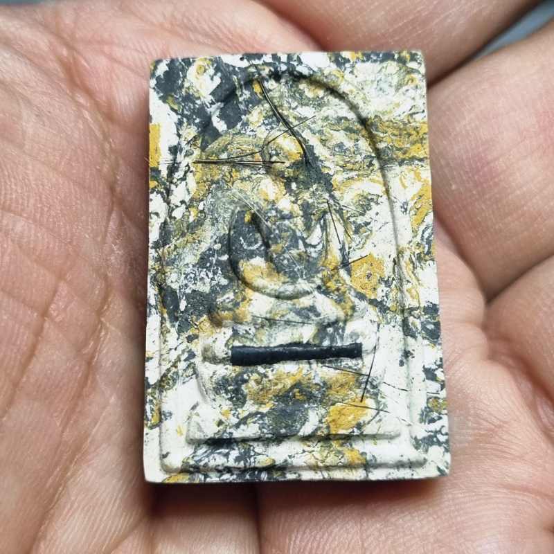 (เลข 16) สมเด็จ 7 ป่าช้า เนื้อลายเสือ ตะกรุดเงินแท้ หลวงปู่เขียน ปุญญกาโม สำนักสงฆ์ป่าช้าโพนสิม จ.อุบลฯ ด้านหน้าเกศาหลวงปู่เพียบ