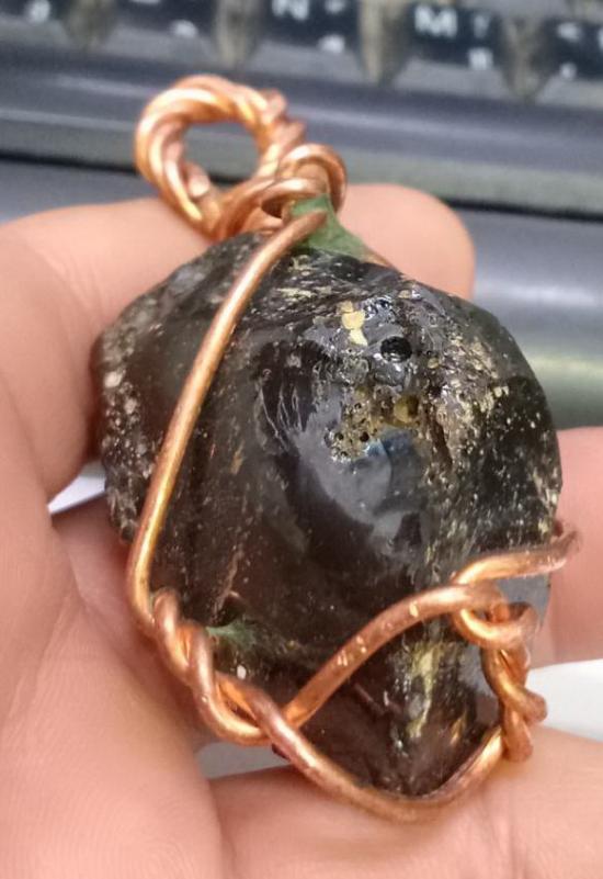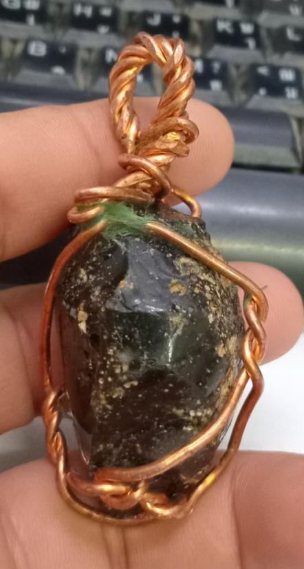 รายละเอียด อุลกมณีพันทองแดงเป็นห่วง สำหรับห้อยกล้อง หรือคล้องเป็นพวงกุญแจ หรือสะเก็ดดาวตก เป็นของทนสิทธิ์ พกบูชาติดตัว เชื่อว่าสามารถกันคุณไสย และสามารถดูดพิษสัตว์ได้