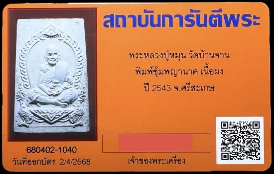 พระผงนั่งซุ้มพญานาค หลวงปู่หมุน ฐิตสีโล วัดบ้านจาน พระผงนั่งซุ้มพญานาคเป็นพระผงยุคต้นของหลวงปู่ออกวัดไตรนิมิตรปี2543สภาพสวยคมชัด ตัวหนังสือติดคมชัดทุกตัว ไม่บิ่น ไม่กระเทาะ สวยมากๆครับ องค์นี้พิเศษ มีจีวร ชานหมาก สีผึ้งปิดทองคำแท้ เดิมๆ พุทธคุณของวัตถุมงคลของหลวงปู่เลื่องลือมีประสบการณ์มากมาย สมควรค่าแก่การเก็บรักษาอย่างยิ่งครับ