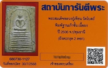 พระสมเด็จหลังรูปเหมือน หลวงปู่เทียน วัดโบสถ์ ปี 2506