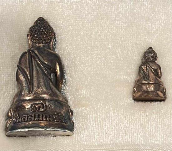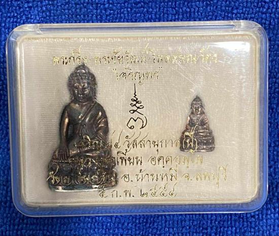พระกริ่ง+พระชัยวัฒน์เนื้อนวะก้นเงิน รุ่นเจริญพร ปี2554 หลวงพ่อเพี้ยน วัดเกริ่นกฐิน จ.ลพบุรี มีโค๊ดและหมายเลข มีกล่องบรรจุเดิม ราคาจากวัด 3000