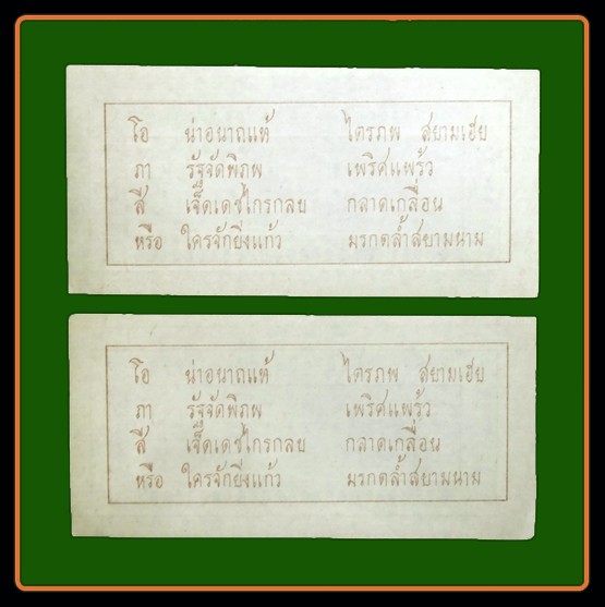 ชื่อพระเครื่อง เก่าถึงยุค-นิยม 2แบบ หลังภาษาไทย 2แผ่น-150-กระดาษยันต์กันภัย หลวงพ่อโอภาสี (หายาก ขนาดประมาณ*9+5 ซม.*
