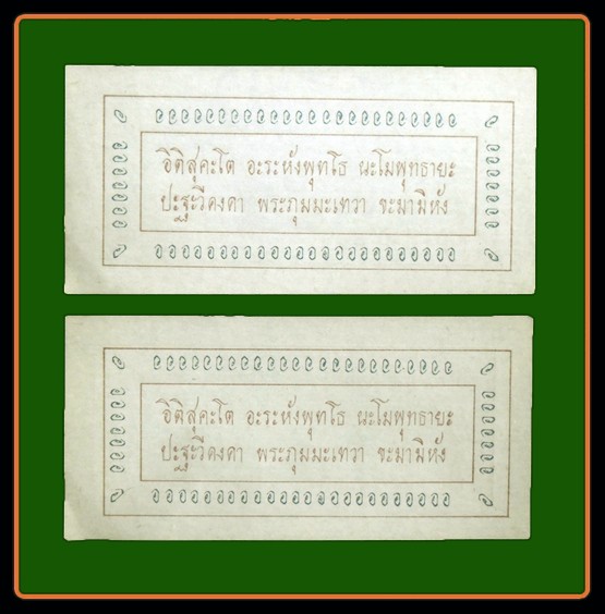 เก่าถึงยุค-นิยม 2แบบ หลังภาษาไทย 2แผ่น-150-กระดาษยันต์กันภัย หลวงพ่อโอภาสี (หายาก ขนาดประมาณ*9+5 ซม.*